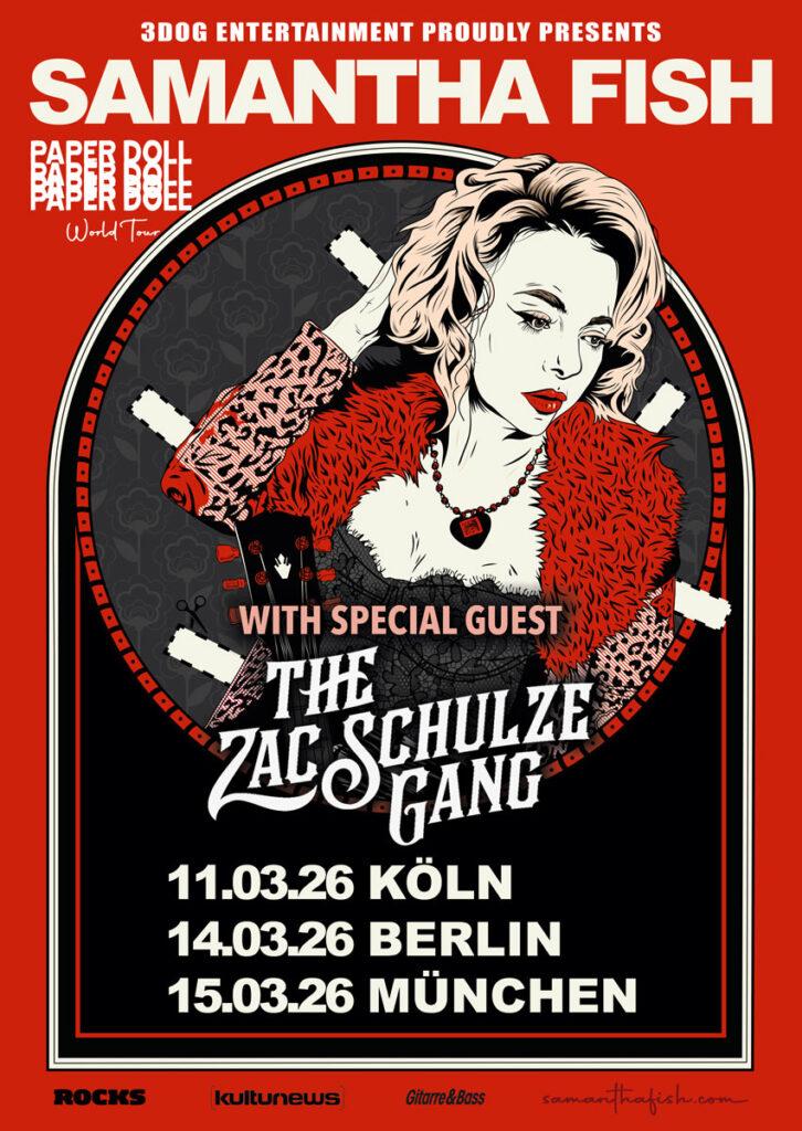 In spring 2026, Samantha Fish and her band will stop in Germany as part of the "Paper Doll World Tour" to present the new album live at three exclusive shows:
